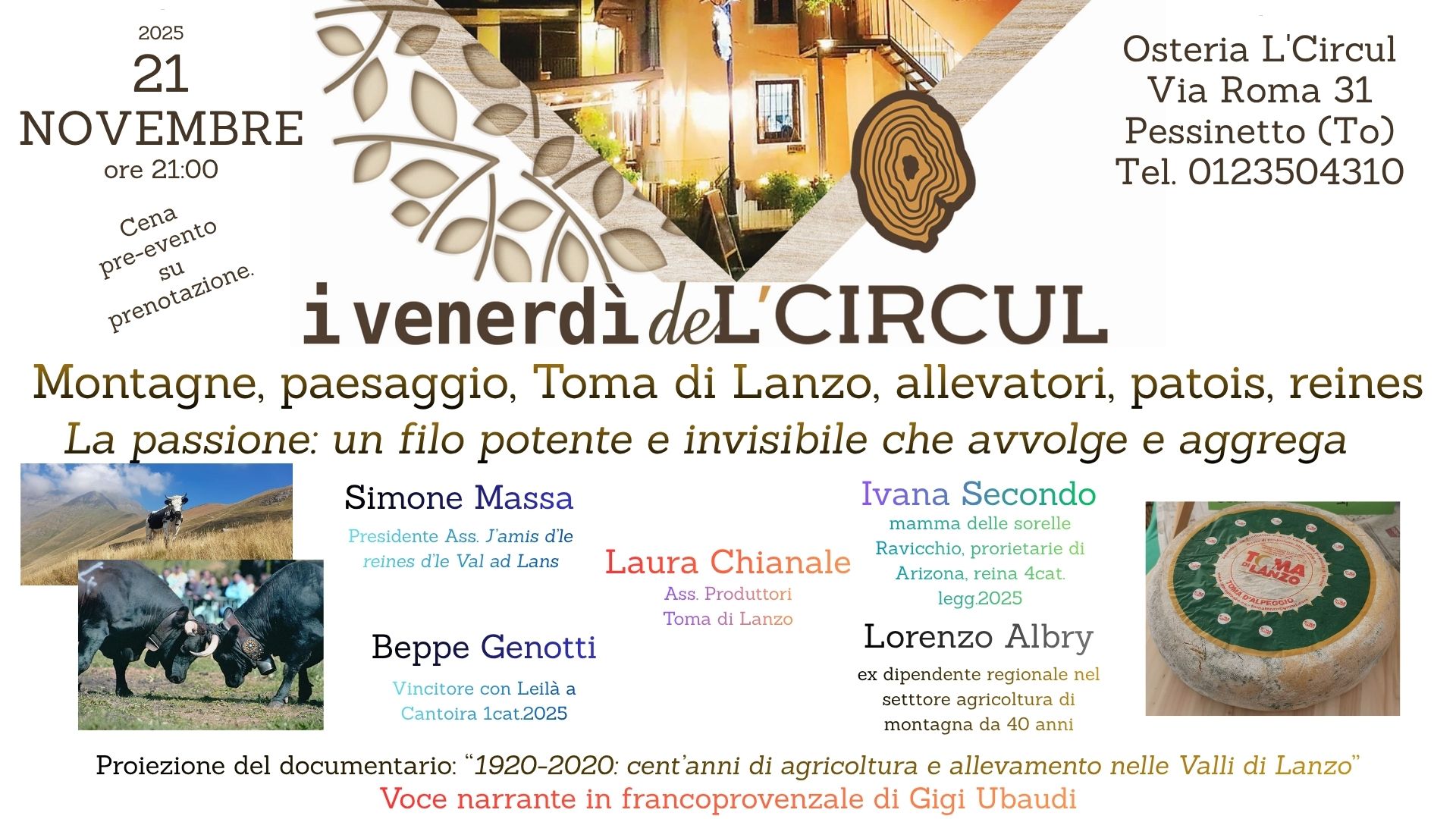 Nel corso della serata verrà proiettato il documentario